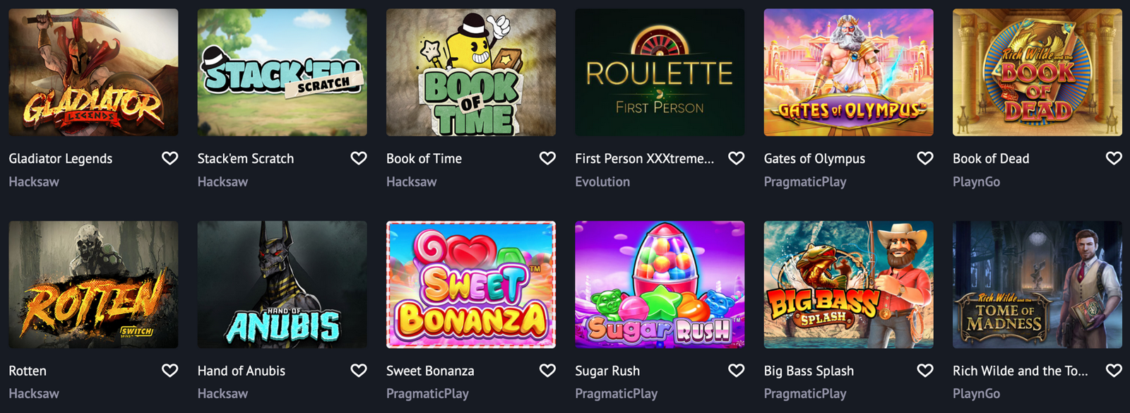 Les meilleurs développeurs de logiciels de l'industrie ont créé tous ces jeux. Faites le plein des meilleurs titres des meilleurs développeurs comme NetEnt, Microgaming, Evolution Gaming, Play'n GO, Yggdrasil, Thunderkick, Quickspin, NYX ou Big Time Gaming, Betsoft, Nolimitcity, et Oryx Gaming ici même.